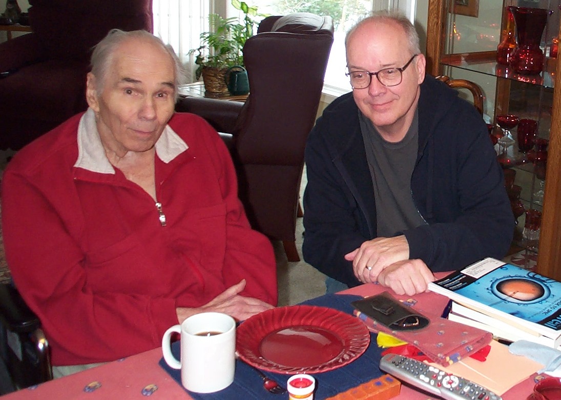 Ernie was fortunate with his pancreatic cancer. He lived pain and symptom free for a year and one half past the diagnosis. His symptoms began subtly and allowed him to work at his computer until four days before his death. He stopped eating, went to bed, and began sleeping until he died. Three days before, he had a visit from Jim Balmer, Director of Dawn Farm, who agreed to have the memorial service at the farm. This is the last picture I took of Ernie with Jim on January 16, 2015 right before Ernie went to bed never to arise again.